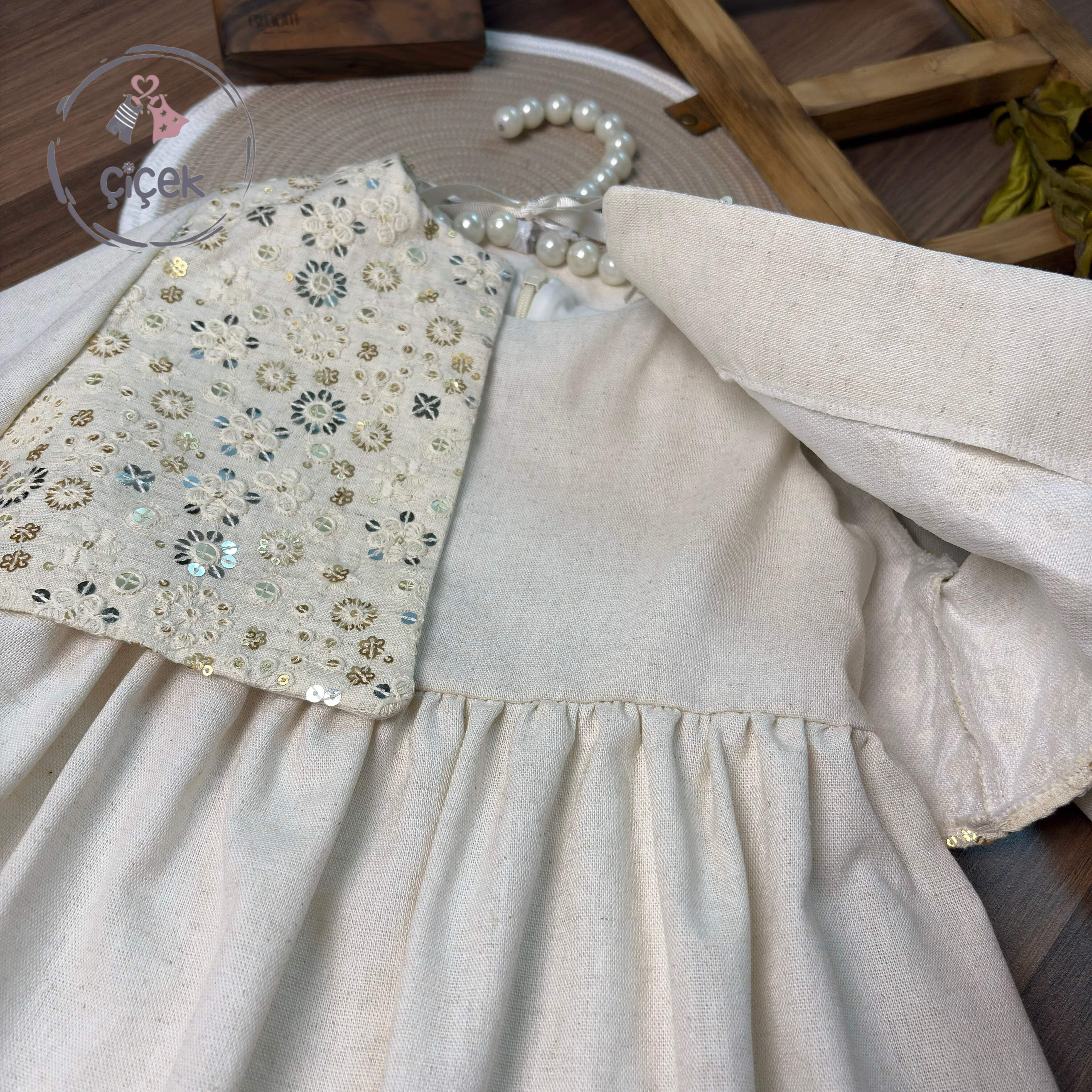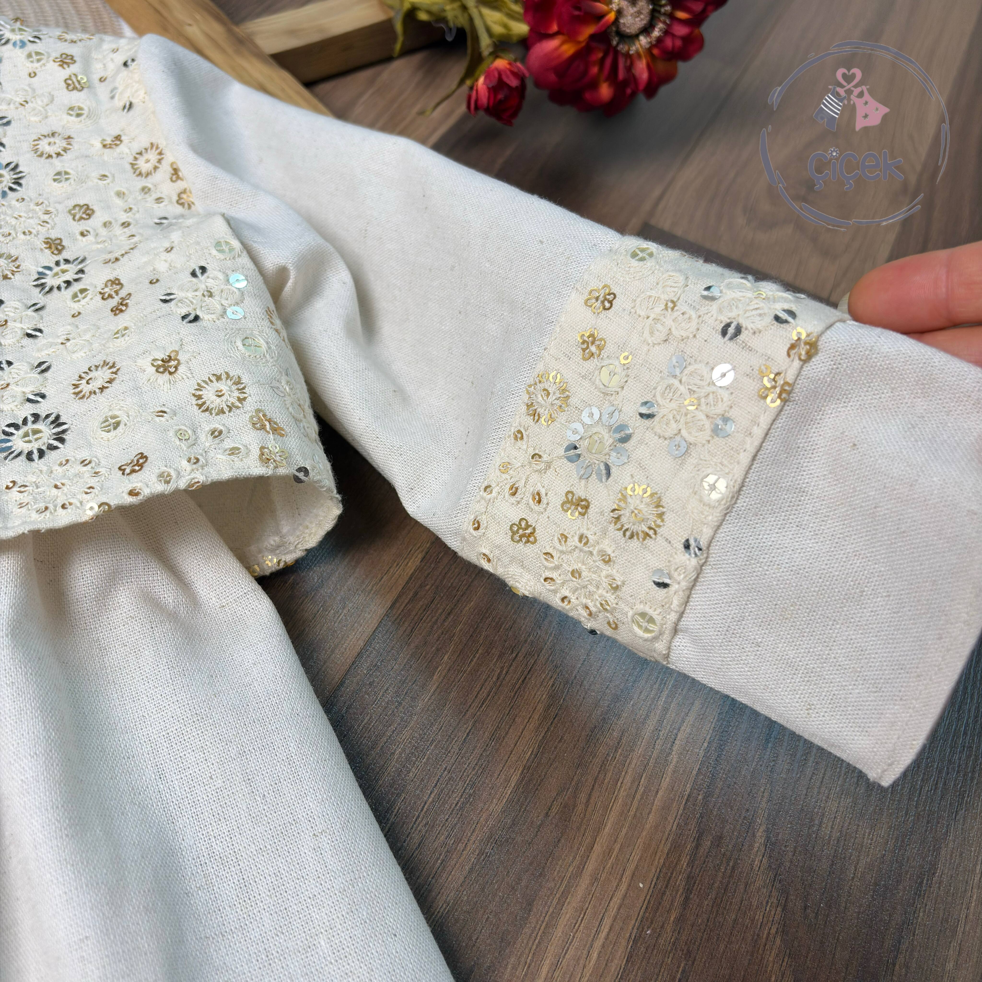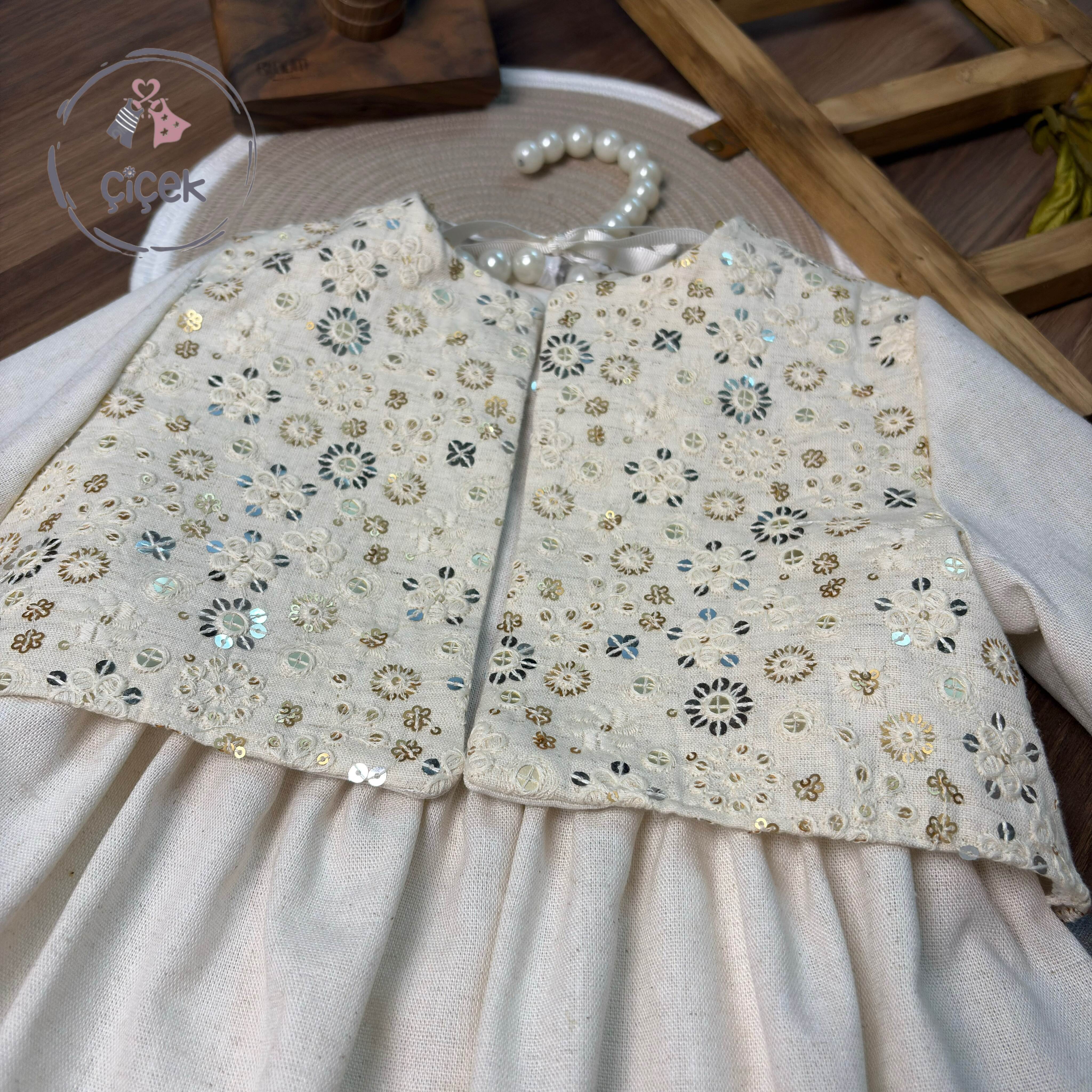 این ساریفون و کت با استر دوزی شده و زیپ پشت، یک انتخاب شیک و راحت برای کودکان است. کت لایهکاری شده با استفاده از استر نخی لطیف، راحتی و ضد حساسیت بودن را تضمین میکند. طراحی خاص ساریفون و کت لینن با سوزندوزی زیبای آن، جلوهای منحصر به فرد و زیبا ایجاد کرده که برای مناسبتهای ویژه و مهمانیها ایدهآل است.