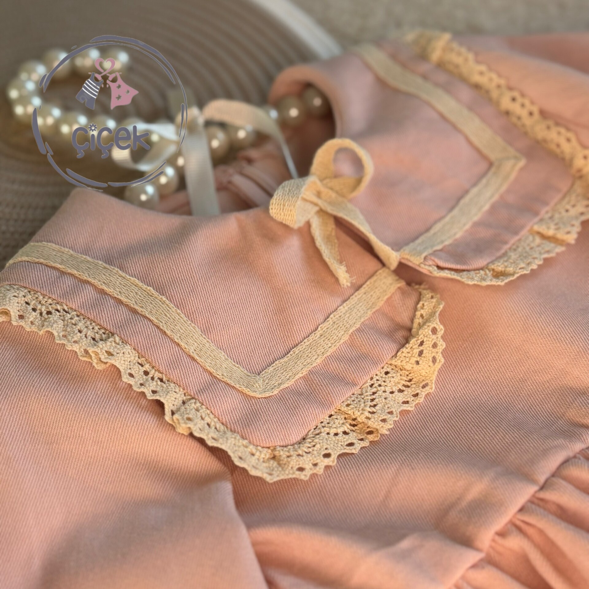 پیراهن کاملیا با جنس کتان باکیفیت و طراحی خاص، انتخابی ایدهآل برای کودکان در مهمانیها و مجالس رسمی است. این پیراهن دارای یقه ملوانی زیبا بوده که با خرجکارهای ظریف تزیین شده است. برای راحتی بیشتر کودکان، پشت لباس زیپدار طراحی شده تا پوشیدن آن آسان باشد. همچنین، سرآستینهای کشدار باعث میشوند که لباس به خوبی روی تن کودک قرار بگیرد و در عین زیبایی، راحتی را به همراه داشته باشد.